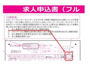 具体的には、「求人申込書」の1欄「公開希望」に、「1」を記入します。